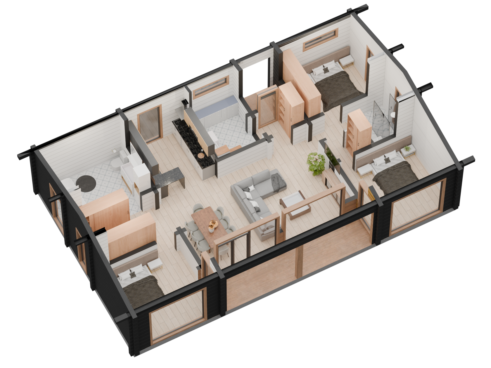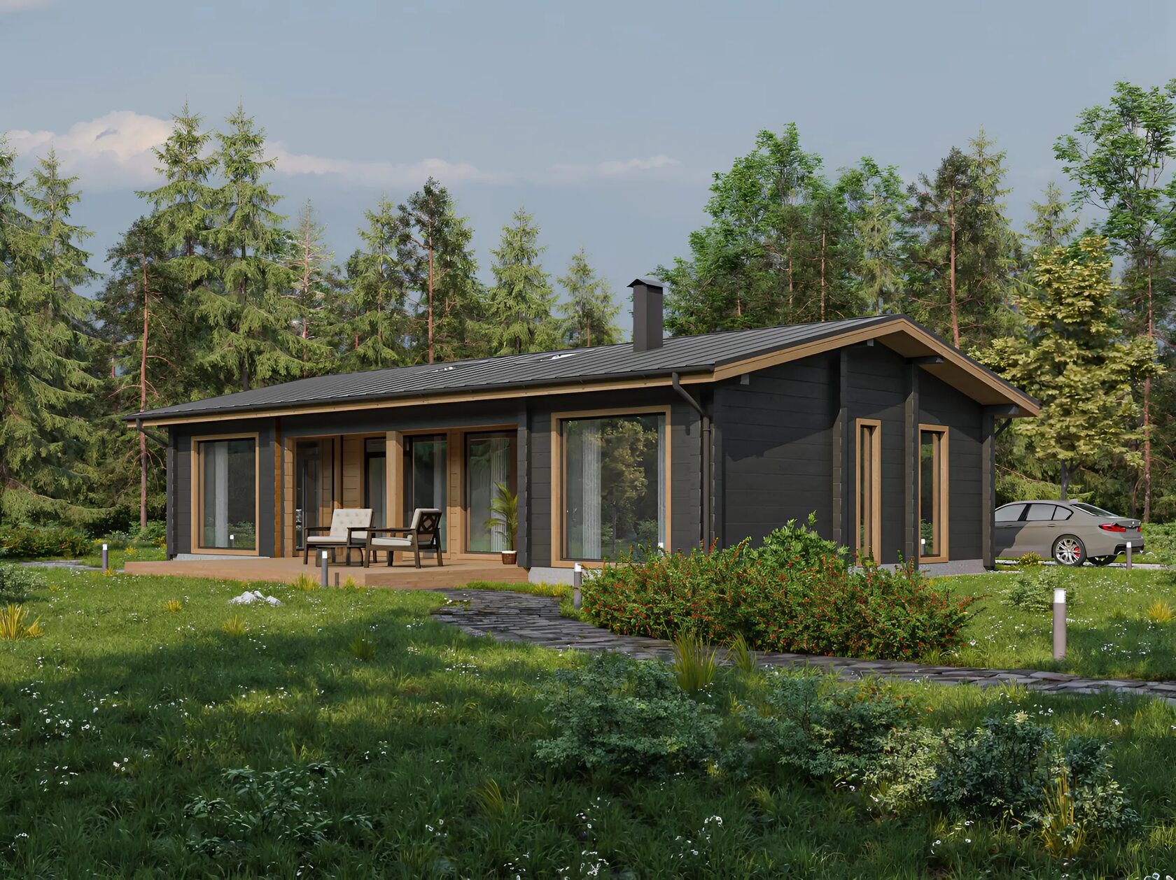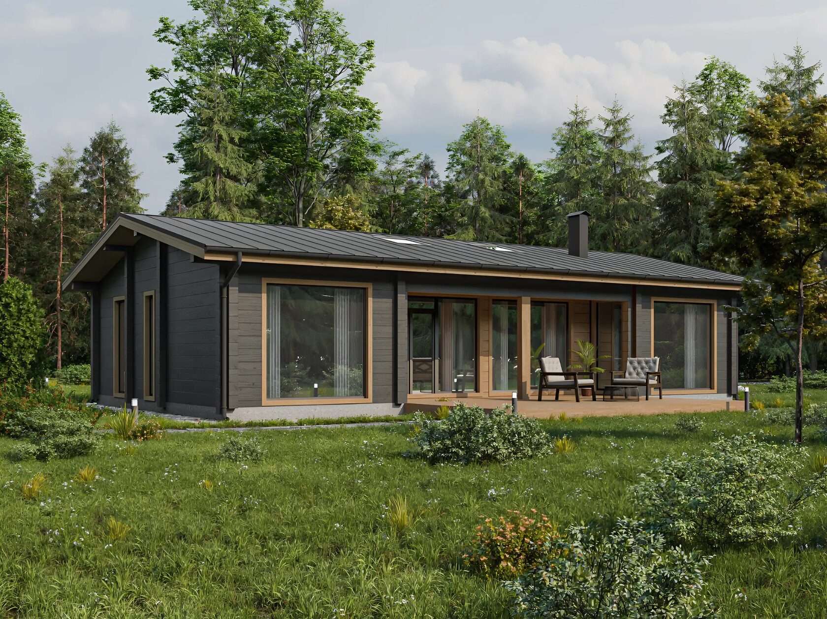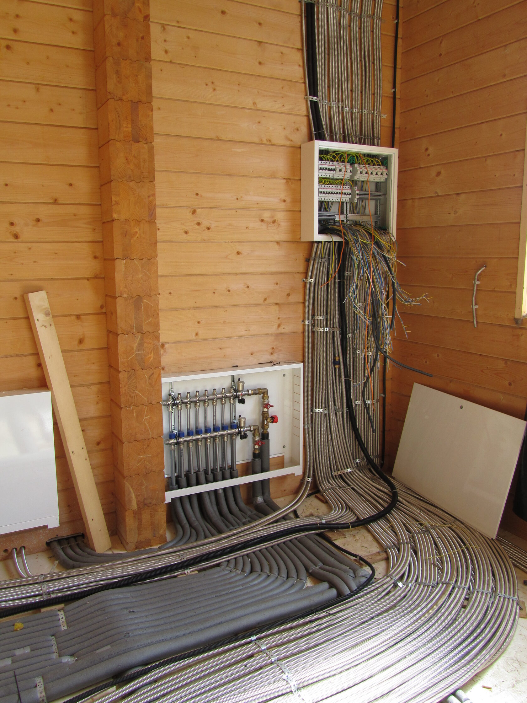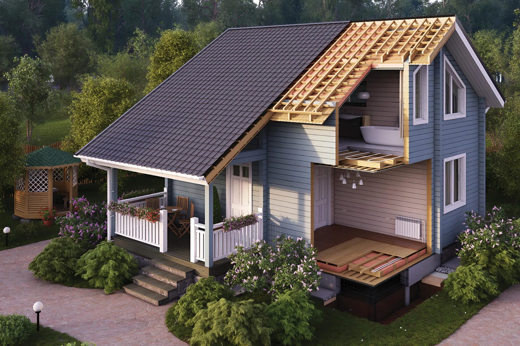 Внешние стены снаружи обшиты плитами МДВП 25 мм. Это мягкие плиты из древесного волокна, которые защищают стены от попадания влаги снаружи. Но у них есть еще несколько плюсов. Плиты МДВП являются утеплителем, по свойствам таким же как минеральная вата. Плюс, они паропроницаемы. То есть — даже если по каким-то причинам в стену попала влага, она легко выйдет через МДВП и проветрится через вентзазор. В такой конструкции стены нет шансов для образования плесени